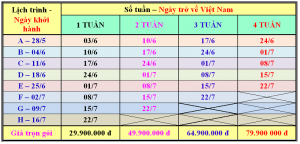 Thời gian: Khởi hành vào các ngày chủ nhật hàng tuần, từ ngày 26/5/2019 và kéo dài đến tuần đầu tiên của tháng 8 với 34 lịch trình.